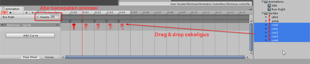Kemudian buat animasi dengan melakukan drag & drop. Sobat dapat juga menentukan kecepatan animasi dengan mengubah nilai dari sample. Silahkan mainkan nilai sample sehiingga animasi tidak terlalu cepat atau terlalu lambat.