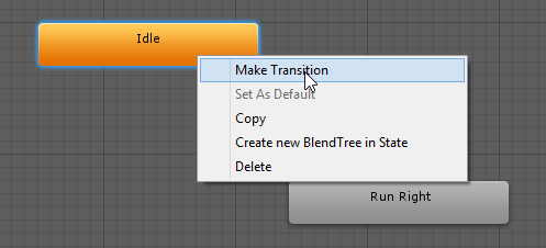 Selanjutnya buat juga transisi dari state 'Run Right' ke idle dengan cara yang sama.