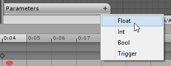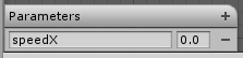 Selanjutnya kita buat parameter 'speedX'. Parameter speedX ini kita gunakan sebagai parameter yang menyatakan kapan terjadi transisi dari idle ke run atau sebaliknya. Buat parameter speedX berupa float.Pada window animator di bagian parameters tambahkan dengan klik icon '+'