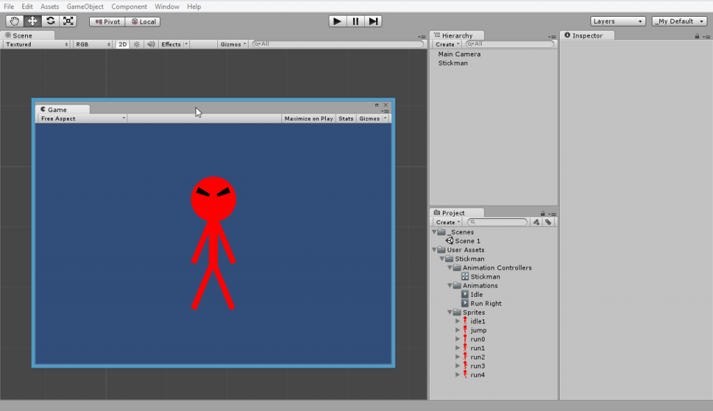 Selesai sudah... Jalankan program.. Secara default stickman akan menjalankan animasi 'Idle'.