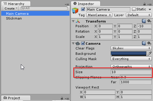 Sobat juga dapat memainkan ukuran pandangan main camera agar obyek tidak terlihat terlalu besar atau kecil. Lihat efeknya di window game