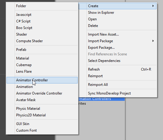 Selanjutnya kita buat 'animator controller' untuk stickman. animation controller saya buat di dalam folder 'User Assets/Stickman/Animation Controllers'. Buat dengan klik kanan >> create >> animator controller